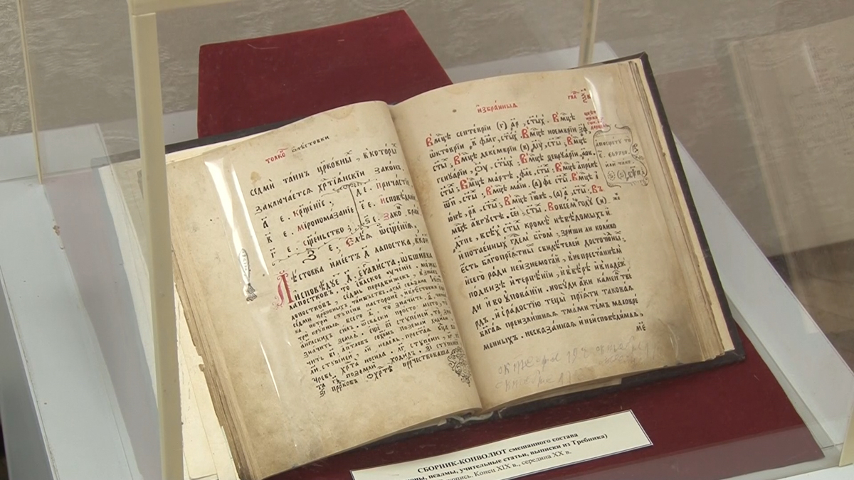 В экспозиции – 26 старинных книг, 13 икон, порядка 400 рукописных и печатных текстов