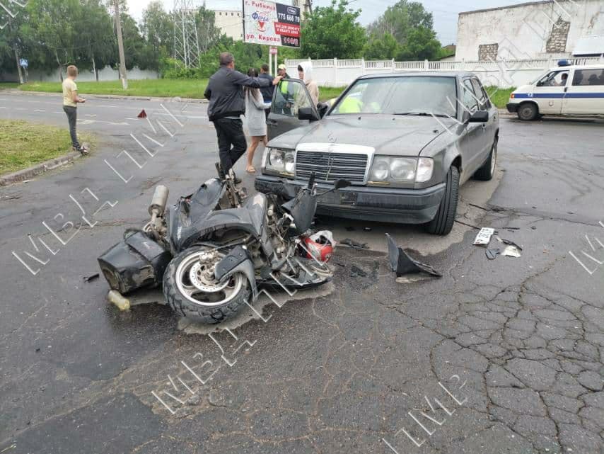 Рыбница, 17 июня. /Новости Приднестровья/. Сегодня вечером в Рыбнице на перекрёстке улиц Кирова и Чернышевского произошла авария: Mercedes столкнулся со скутером Sonik, сообщает пресс-центр МВД ПМР.