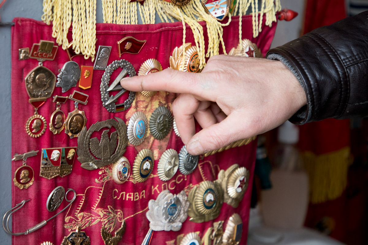 «Первый экспонат - советский флаг из Копанской русской школы. После распада СССР его сняли и хотели выкинуть, но директор запретил это делать и передал его мне», - делится коллекционер.