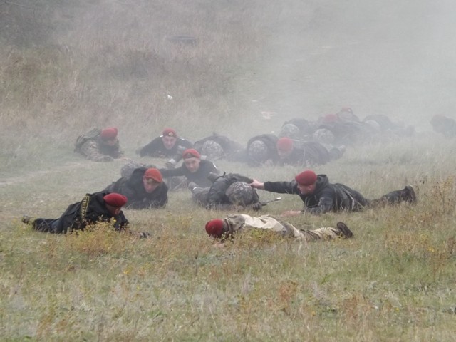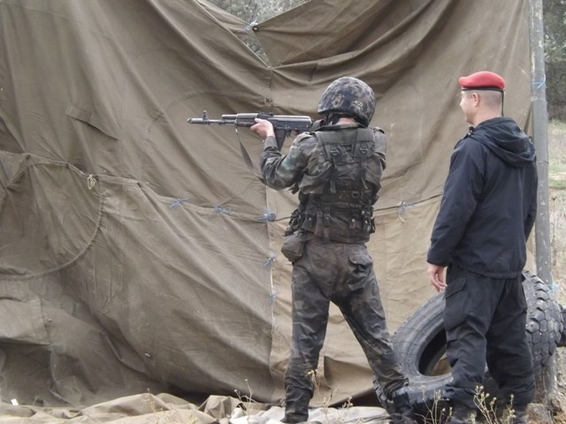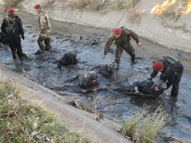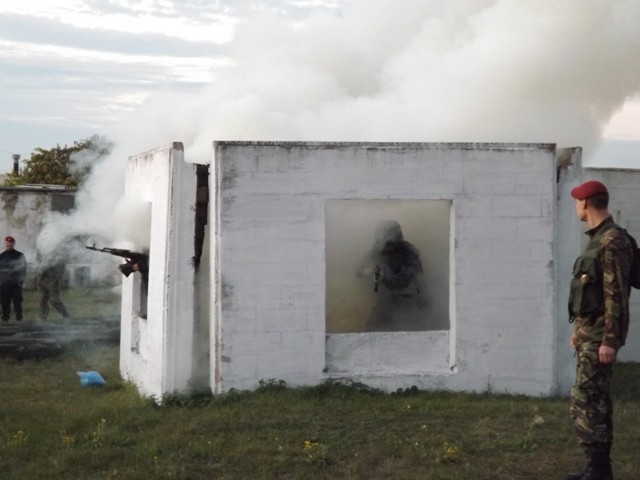 Перед финальным спаррингом претенденты выполнили спуск в карьер, переползли по-пластунски под действенным огнем противника и выполнили специальные стрелковые упражнения из АК.