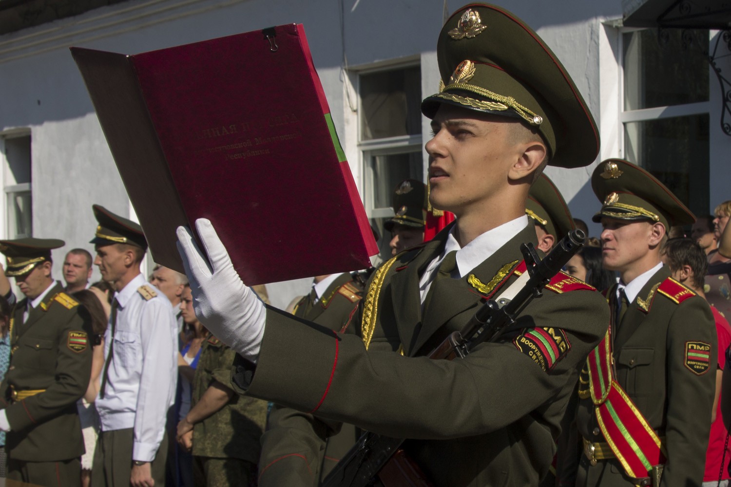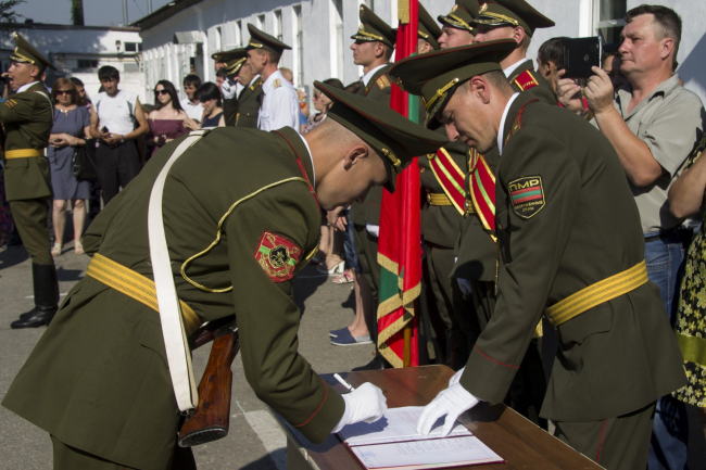 Тирасполь, 23 июля. /Новости Приднестровья/. Молодые солдаты роты Почётного караула торжественно присягнули на верность Отечеству. Церемония началась с выноса боевого знамени. Громко и чётко звучали священные слова Воинской присяги, сообщает пресс-служба Минобороны ПМР.