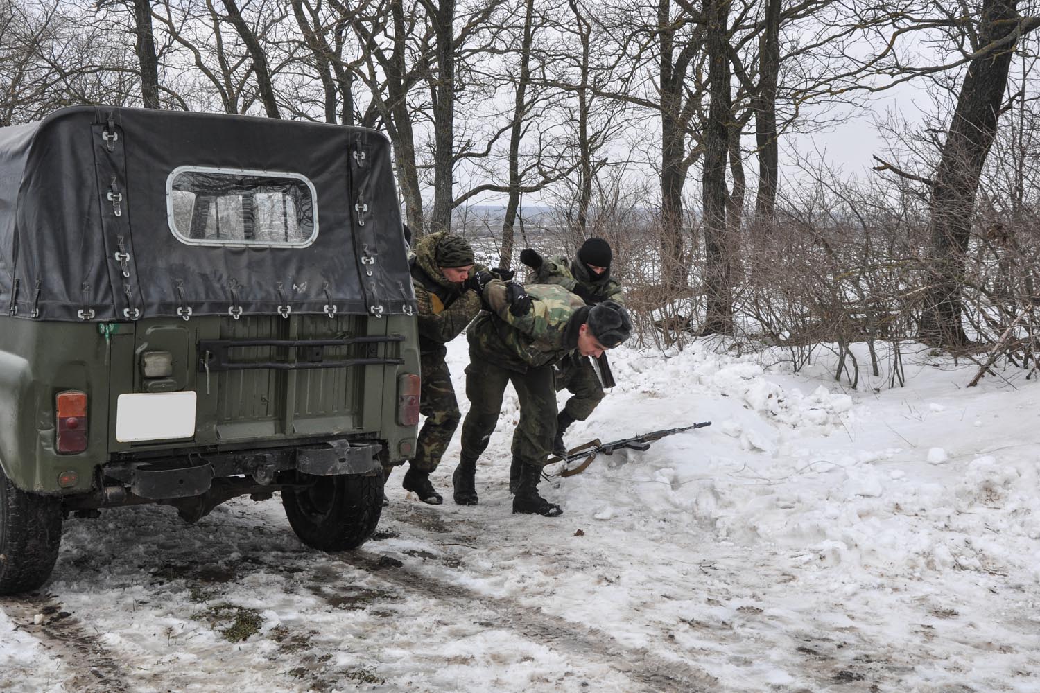 Один из элементов занятия – отработка действий группы при нападении на объект, например, захват автомобиля условного противника.