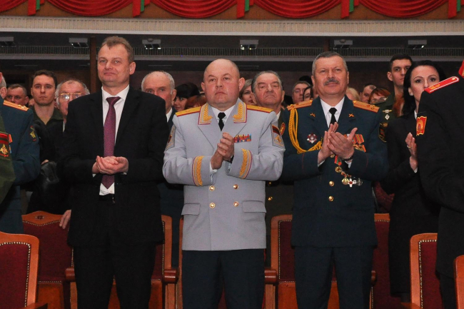В ходе торжественного собрания военнослужащим показали документальный фильм об истории создания и развитии отечественных Вооруженных сил.