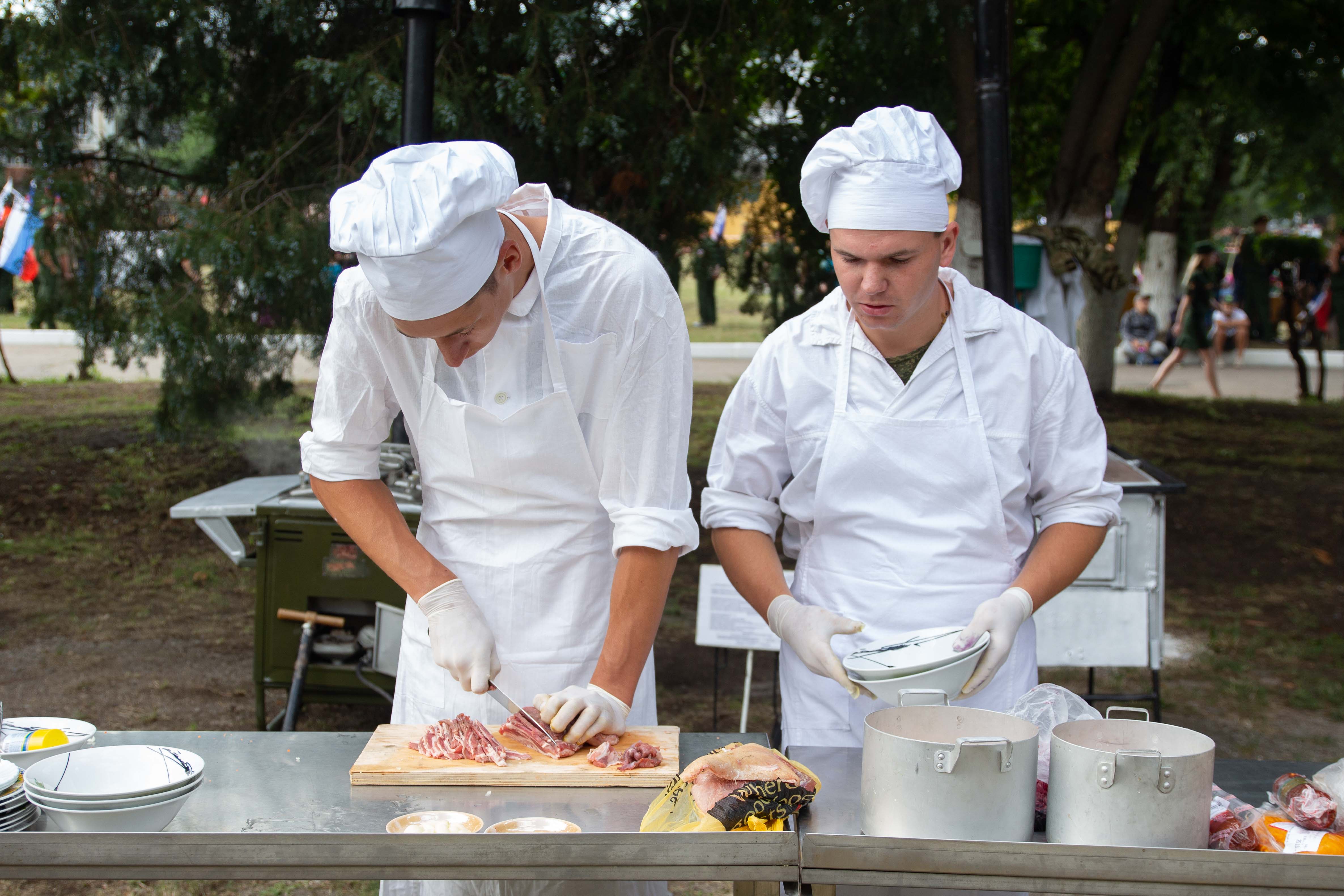 Борьба развернулась и у полевых кухонь. Армейские повара готовили блюда по выбору в течение четырех часов. Жюри оценивало их по степени сложности, оформлению, вкусу и запаху.
