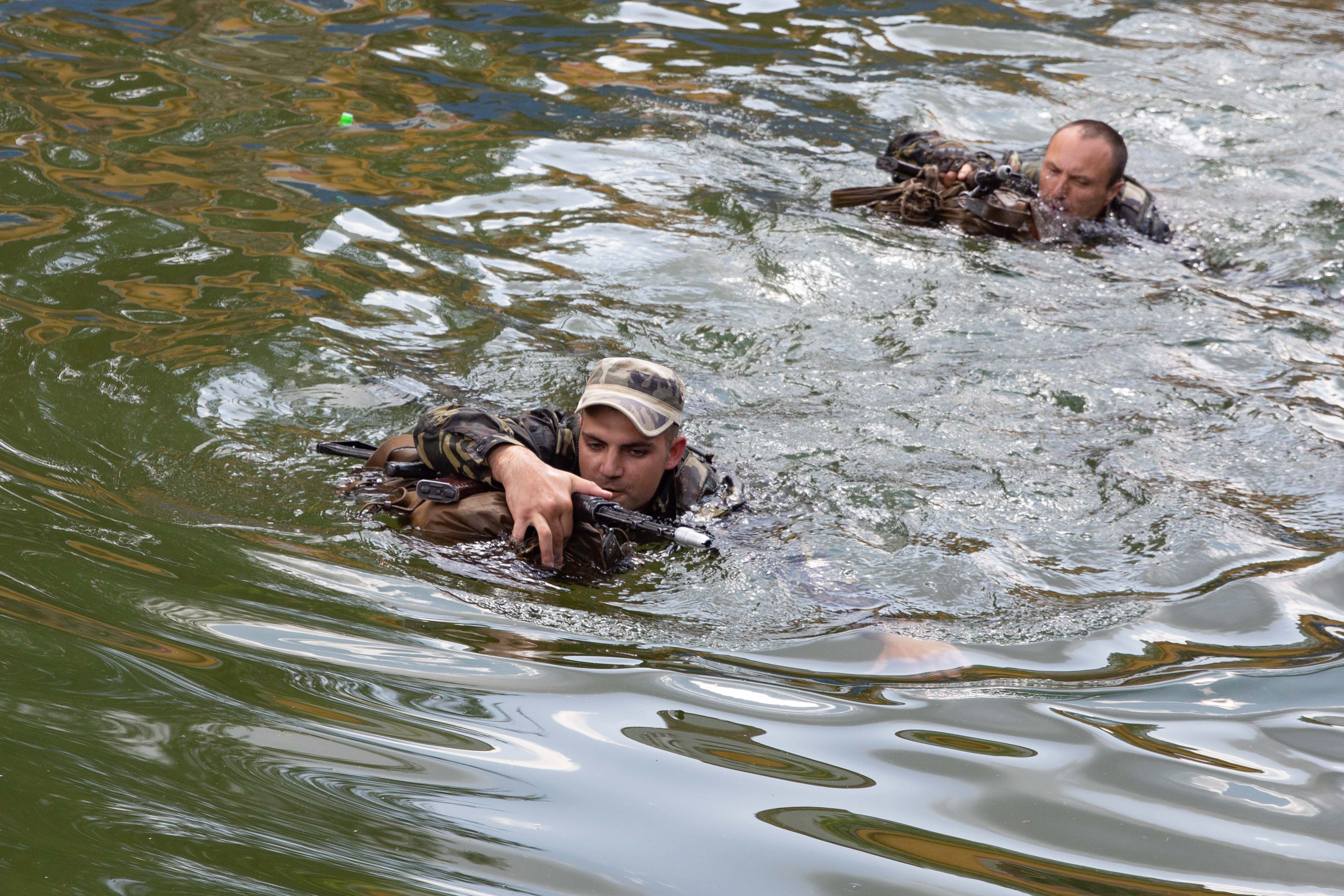 «Самым тяжелым была водная преграда. Скажем так, плавать умеют, конечно, все, но, когда ты плывешь в военной форме и в полной экипировке, вес становится настолько большой, что грести руками, а если учесть, что гребешь одной рукой, становится непросто. Поэтому приходится преодолевать бассейн на волевых качествах», – рассказал старший лейтенант Валентин Романов.