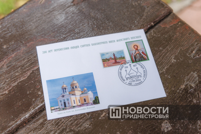 Он же поставил первую, символическую печать на спецгашении тематических конвертов. Их тираж – всего 90 штук. На самом конверте изображён храм Александра Невского и виньетка с его образом, на марке – его бюст в одноимённом парке крепости.