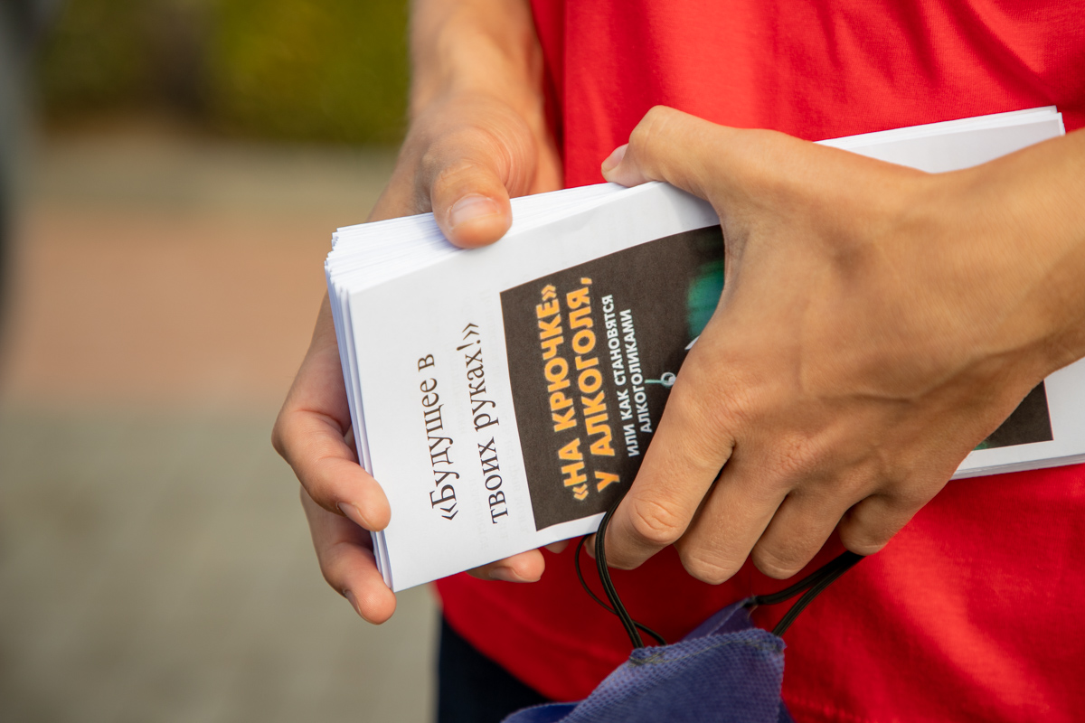 Волонтеры-медики раздавали прохожим флаеры о вреде алкоголя, а также рассказывали о том, как он влияет на организм человека и к каким последствиям приводит частое его употребление.