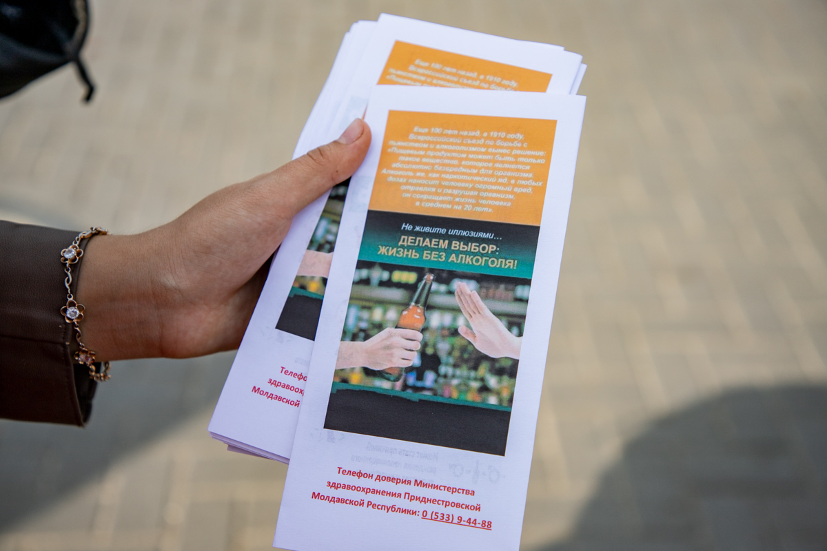 Тирасполь, 3 октября. /Новости Приднестровья/. В столице студенты Медицинского факультета ПГУ провели акцию «Будущее в твоих руках», приуроченную ко Всемирному дню трезвости и борьбы с алкоголизмом. Организатором мероприятия выступило Управление молодёжной политики Министерства просвещения ПМР.