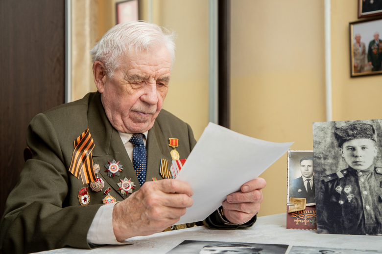 «Во время эвакуации я жил в Ленинградской области, работал в колхозе. В октябре 1943 года мне пришла повестка в армию. Направили в запасную бригаду, но пробыли мы там недолго. Стрелять, бросать гранату научились на фронте», – рассказывает ветеран.