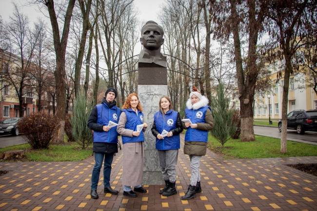 На бульваре Гагарина активисты рассказывали прохожим о том, что в момент первого полёта Юрия Гагарина в космос в Тираспольском ПТУ № 5 (сегодня – технический колледж ПГУ) учащиеся-радиолюбители услышали сигналы его космического корабля. Об этом они написали в письме космонавту, и он им ответил. ПТУ было присвоено имя Ю.А. Гагарина.