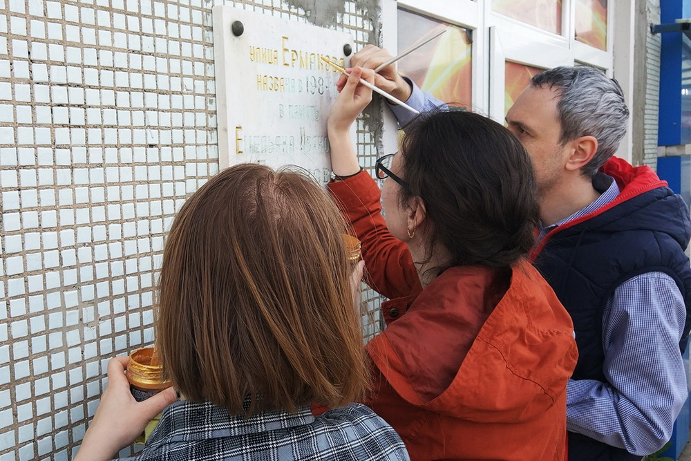 Бендеры, 17 апреля. /Новости Приднестровья/. В Бендерах «Волонтёры Победы» провели акцию в рамках международного субботника и восстановили мемориальную доску на улице Ермакова. Активисты очистили мраморную плиту от пыли, счистили выцветшую краску на словах таблички, вымыли доску, золотой краской навели буквы, говорится на странице движения в соцсетях.
