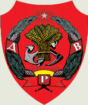 На иллюстрациях изображены нынешнее знамя округа и герб ДВР.