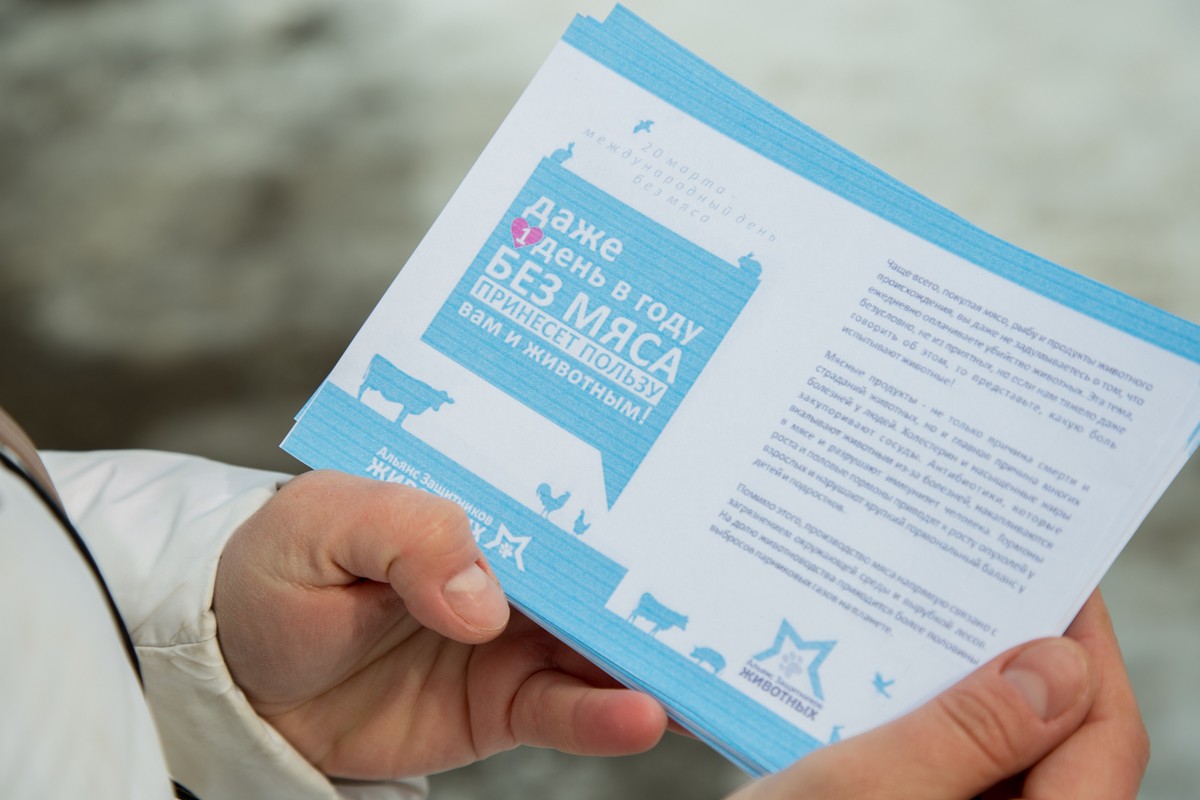 В ходе пикета всем прохожим были розданы брошюры, в которых собрана вся информация о Международном дне без мяса. А с некоторыми прохожими даже проводились дискуссии. Как отметили организаторы пикета, главная задача проведенного мероприятия - донести до каждого жителя республики, что даже 1 день без мяса принесет пользу животным.