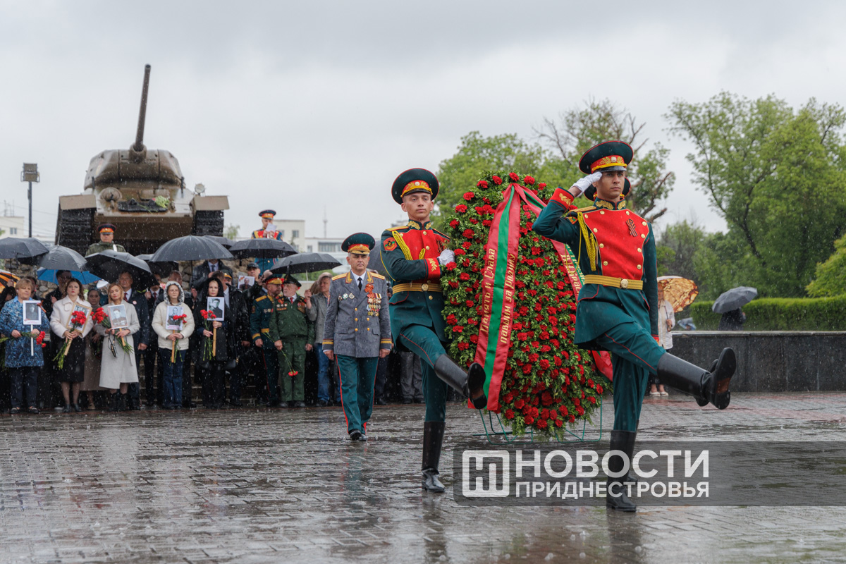 Ровно в 10:00 колонна выдвинулась по главной улице столицы в сторону Мемориала Славы. Среди тысяч приднестровцев шел Президент ПМР Вадим Красносельский с семьей.