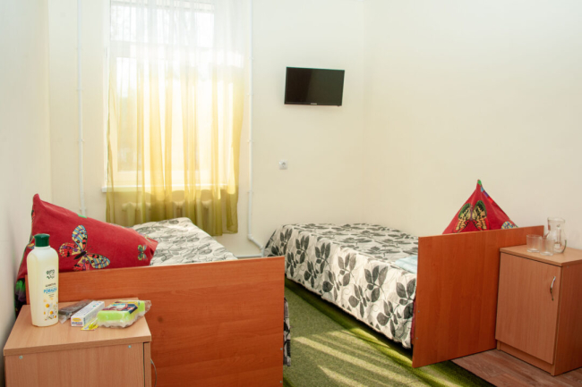 Врачей расселили в спальном корпусе «Дружба». Жить они будут в двухместных номерах по одному человеку. Комнаты оборудованы всем необходимым, есть новые постельные принадлежности и средства личной гигиены, ЖК-телевизоры.