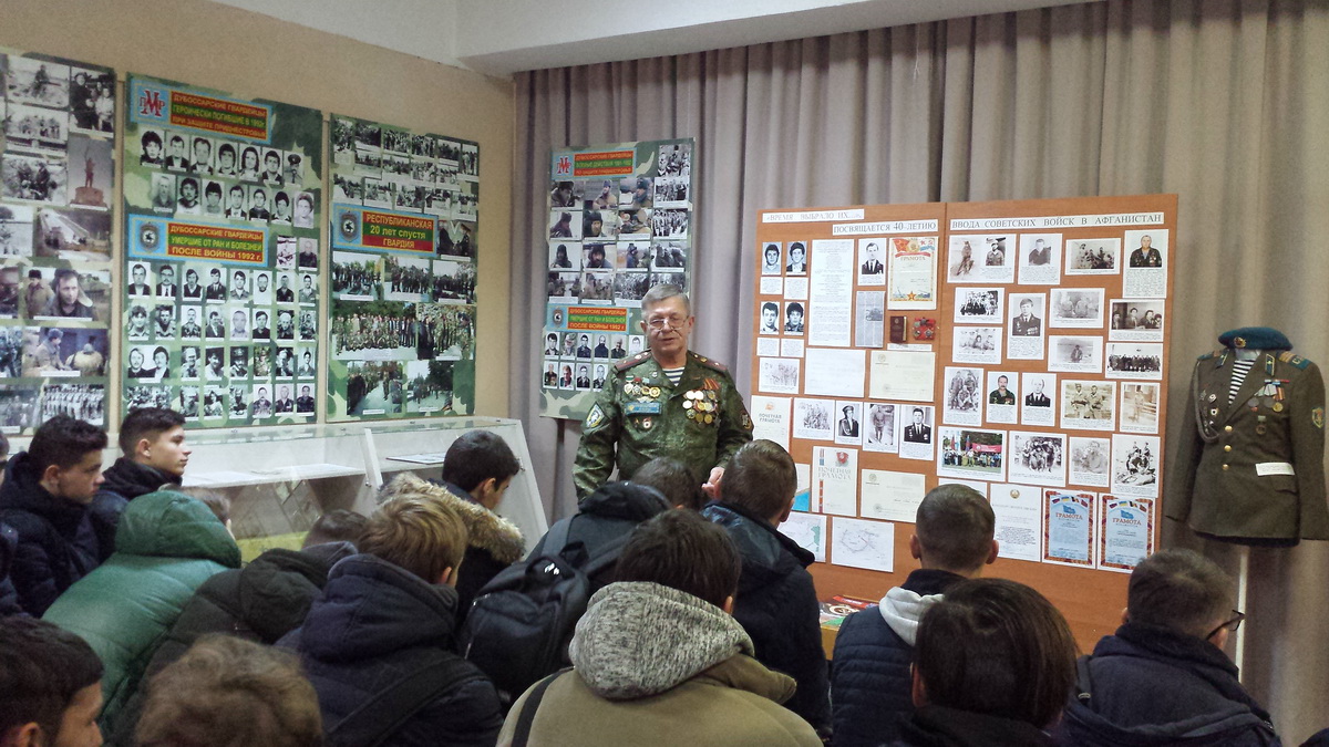 Решение о вводе Советских войск в Афганистан было принято 12 декабря 1979 года на заседании Политбюро ЦК КПСС, и уже 25 декабря войска 40-й Армии перешли государственную границу ДРА. Так началась афганская война, которая стала самой длительной в истории СССР. Одними из первых попали туда военнослужащие Дубоссарского района, 45-го инженерно-сапёрного полка Одесского военного округа. Первым командиром его стал дубоссарец - подполковник Анатолий Абдеев. Отдельный инженерно-сапёрный полк был направлен в Демократическую республику Афганистан в феврале 1980 года для поддержания полноценного инженерного обеспечения воинских частей 40-й Армии. Спустя 1,5 месяца 24 марта при исполнении интернационального долга командир Анатолий Абдеев погиб. О службе советских воинов-интернационалистов в Афганистане учащимся Дубоссарского Индустриального техникума сегодня рассказал ветеран той войны, офицер запаса Сергей Дидковский.