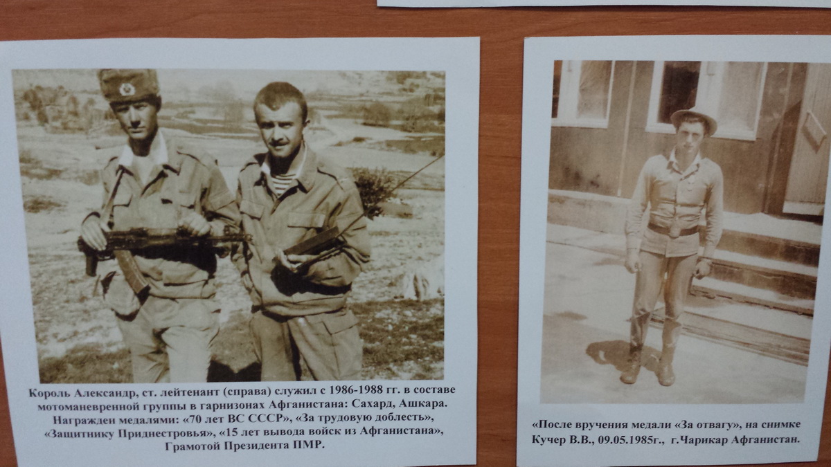 На выставке представлены фотографии дубоссарцев, выполнявших свой интернациональный долг в Афганистане, их награды, грамоты и благодарственные письма Президиума Верховного Совета СССР.
