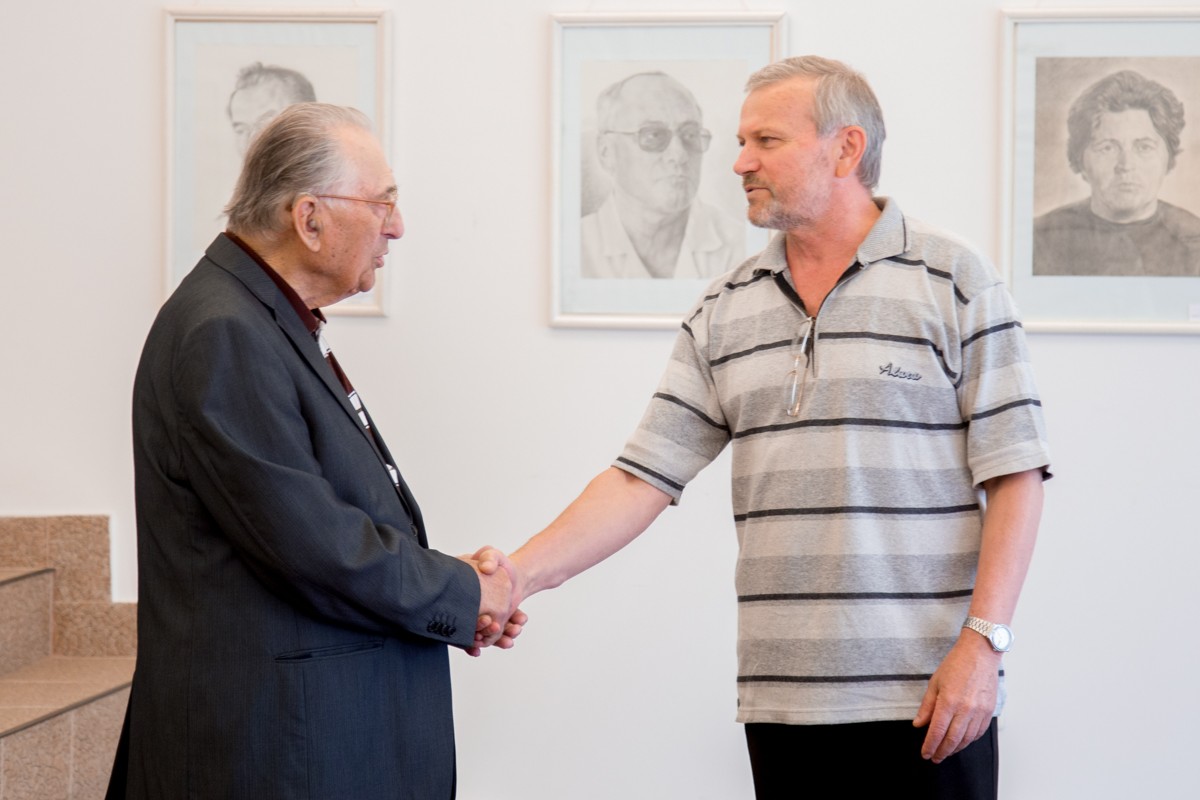 Тирасполь, 10 мая. /Новости Приднестровья/. 13 портретов, выполненных в карандаше. На полотнах изображены известные жители Приднестровья, защитники республики, ветераны войны в Афганистане и Великой Отечественной войны. В Министерстве иностранных дел ПМР сегодня открылась выставка старейшего члена Союза художников Приднестровья Михаила Кислицкого. Сам автор тоже прошёл горнило Второй мировой. Накануне открытия выставки, 9 мая, Михаил Кислицкий поднимал знамя Победы на центральной площади Тирасполя.