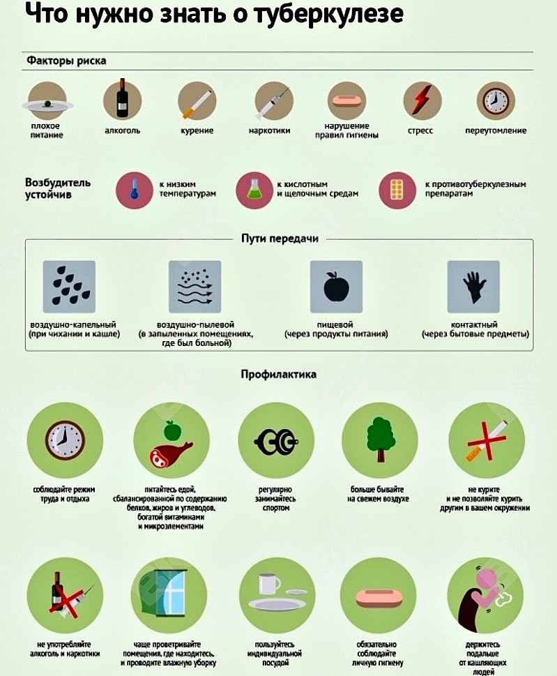 Важно помнить: туберкулёз можно вылечить. Недопустимо самостоятельно ставить диагноз и заниматься самолечением. Раннее начало лечения при туберкулёзе – залог успешного выздоровления. Если человек не лечится, смертельный исход может настать в течение одного-двух лет.