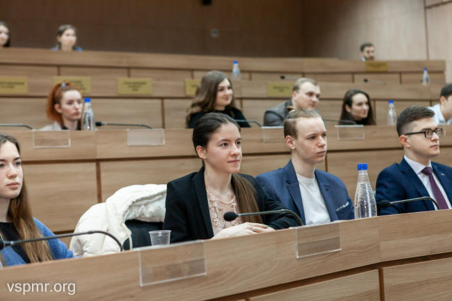 Члены Совещательного собрания рассказали депутатам Молодежного парламента о том, как создавались политическая, финансовая и правовая системы Приднестровской Молдавской Республики. По словам депутата I-IV созывов Верховного Совета ПМР Владимира Рылякова, создатели ПМССР в политику не стремились. Однако потакание национализму и предательство партийного руководства как на республиканском, так и на общесоюзном уровне вынудило их действовать.