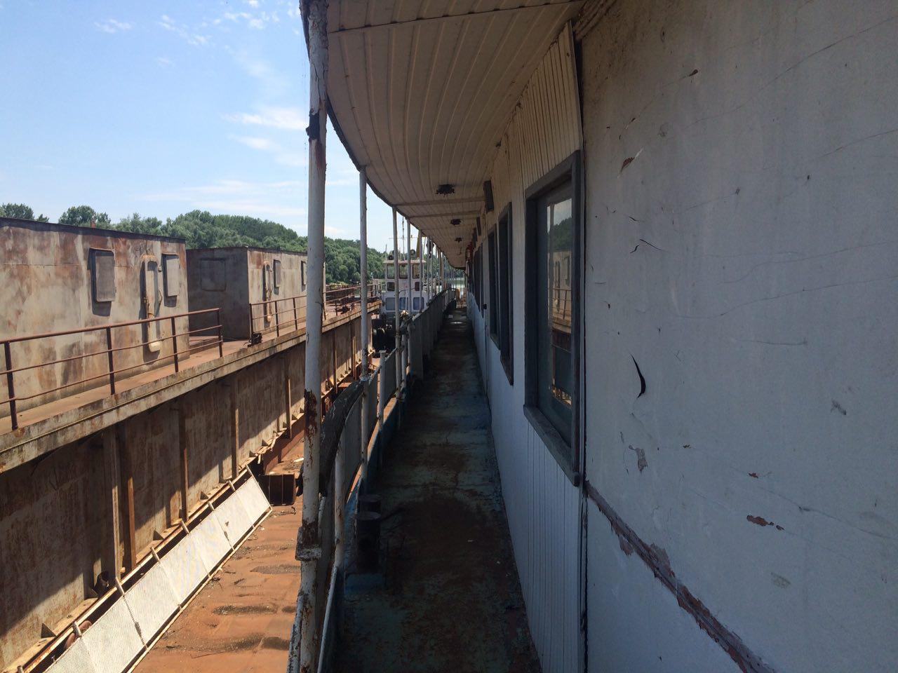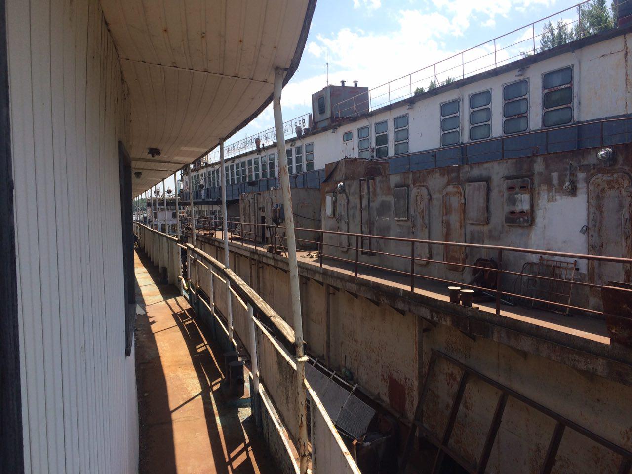 Долгие годы «заточения» на территории речного порта привели теплоход в негодное состояние. Пару месяцев назад судно даже хотели разобрать. Но в дело вновь вмешался Евгений Петров, и не один, а вместе с сыновьями и женой.