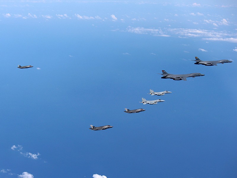 Два истребителя-бомбардировщика F-15 воздушных сил самообороны Японии и два стратегических бомбардировщика ВВС США B-1 провели совместные учебные полеты в субботу, когда в КНДР празднуют годовщину основания страны, сообщает японский телеканал NHK со ссылкой на заявление японских военных, пишет «Интерфакс».