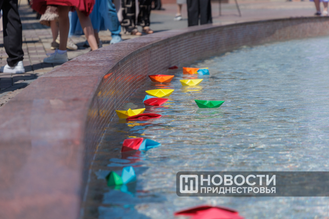 По традиции выпускники и гости праздника на удачу пустили на воду бумажные кораблики.