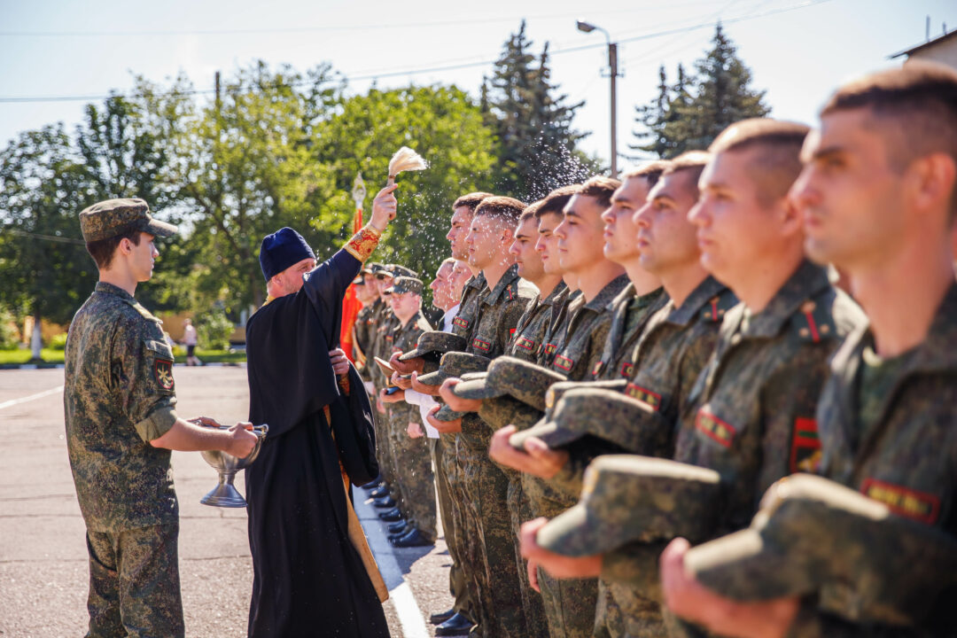 Одним из самых трогательных и традиционных моментов стало прощание со знаменем Военного института. На ратную службу офицеров благословил войсковой священник. Завершилась церемония торжественным маршем молодых лейтенантов.