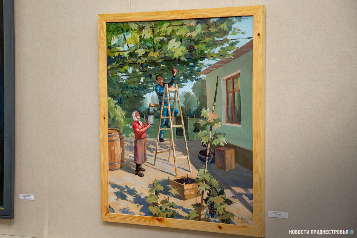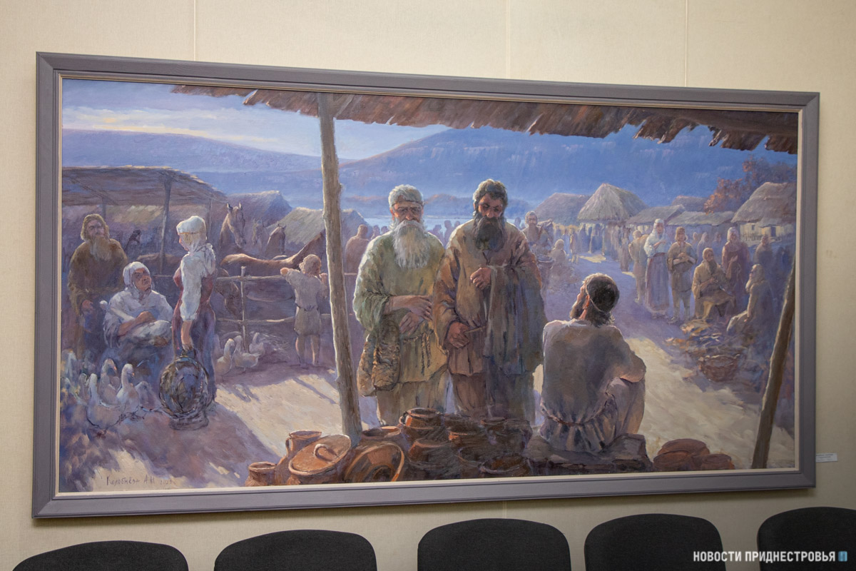 Среди представленных произведений он выделил две работы: «На новые земли» Андрея Петкова (сюжет посвящён заселению села Парканы) и историческую композицию «Славянский базар» Антонины Колобнёвой. Сергей Панов сообщил, что они интересны своей многофигурностью. Тем более что в Приднестровье не хватает художников данного направления.