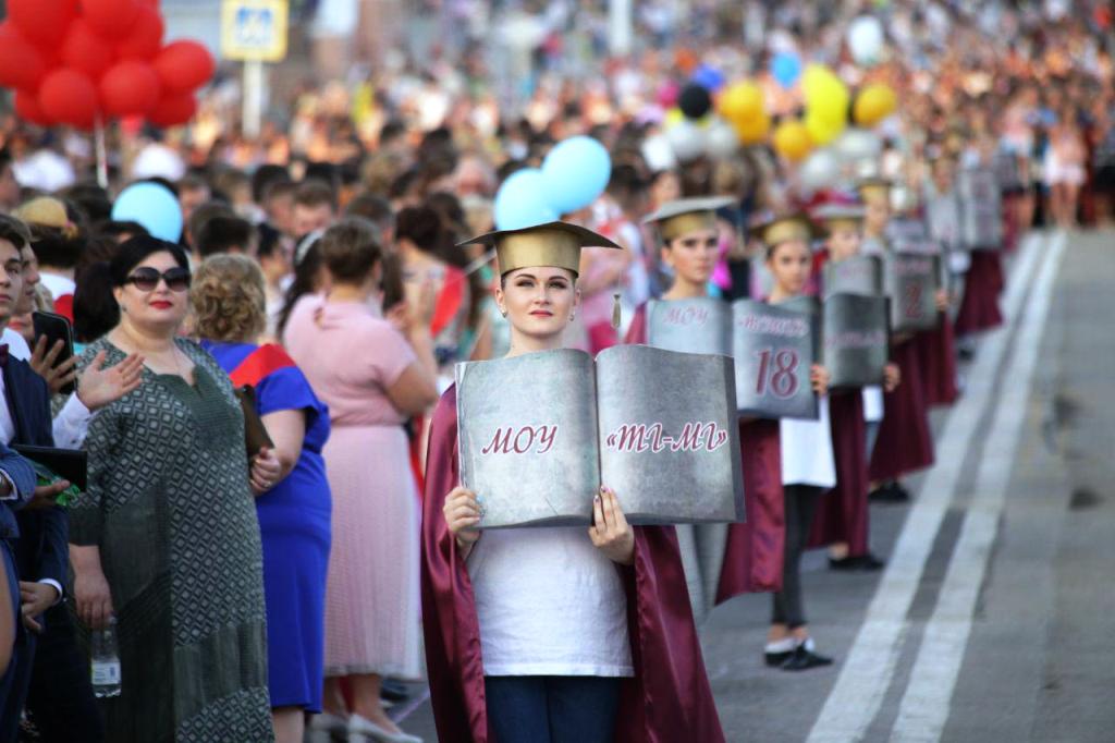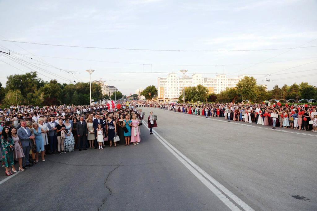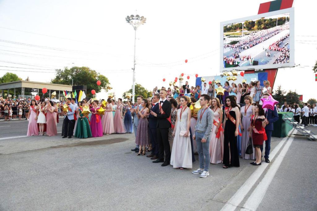 Торжество началось с традиционного парада выпускников организаций образования Тирасполя. Отдельной колонной прошли медалисты.