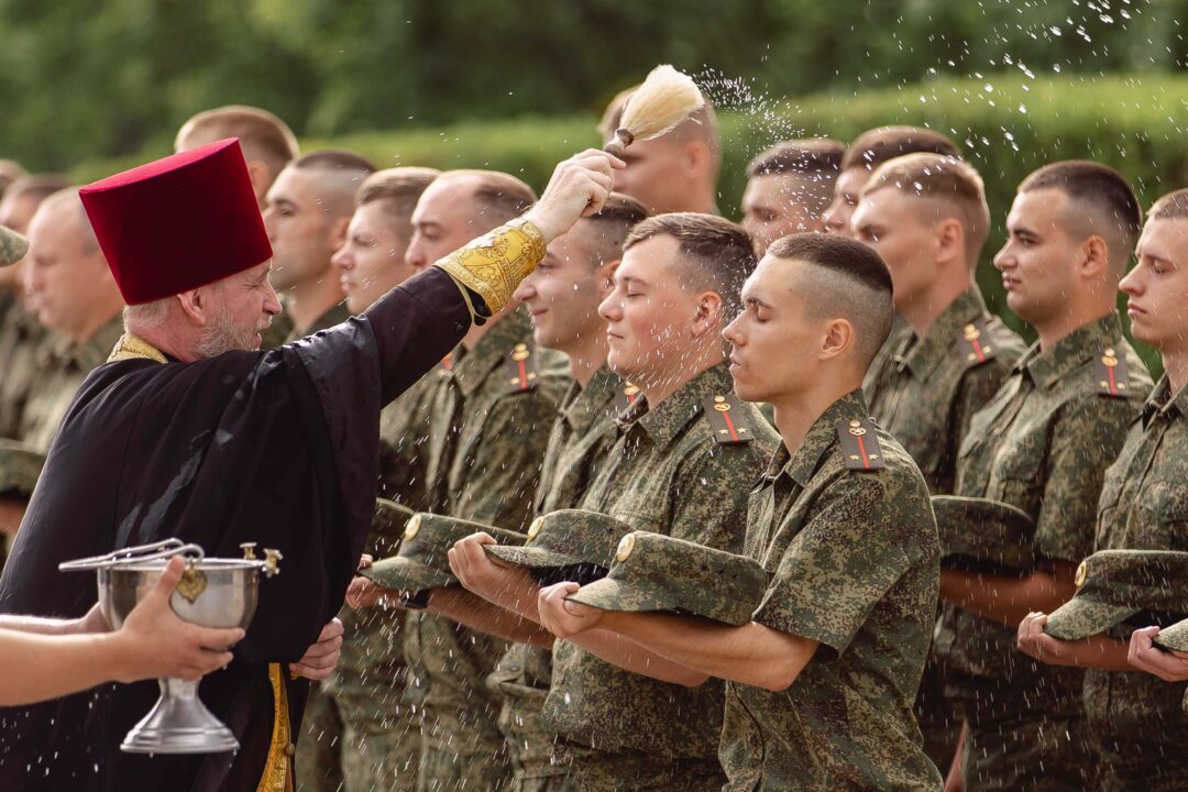После традиционного благословления на ратную службу – прощание со Знаменем и прохождение торжественным маршем.