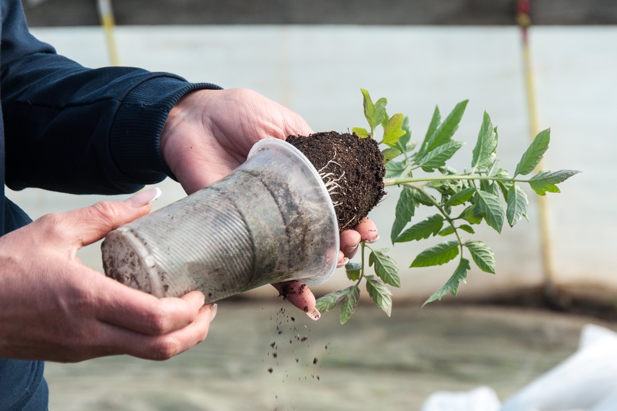 «Рассаживаем вручную, 1 теплицу примерно в течение трёх дней засевали. Какие секреты? В тепличном хозяйстве всё важно: поливать, согревать, вентилировать обязательно. Занимаемся этим уже лет 10. В этом году с женой решили, что нам нужна большая теплица, сделали её из двух маленьких, именно для ранних помидоров, для высокорослых сортов, это уже для себя на продукт», — добавляет её муж Олег.