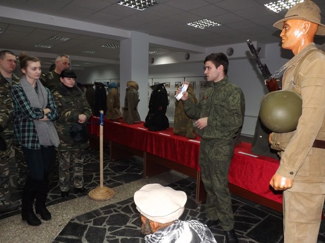 Члены общественной организации «Наследники Победы» рассказали о представленном на выставке оружии, стоявшем на вооружении Красной, а затем уже Советской Армии, а также о форменной одежде всех родов войск. Не остался без внимания период Афганской войны.
