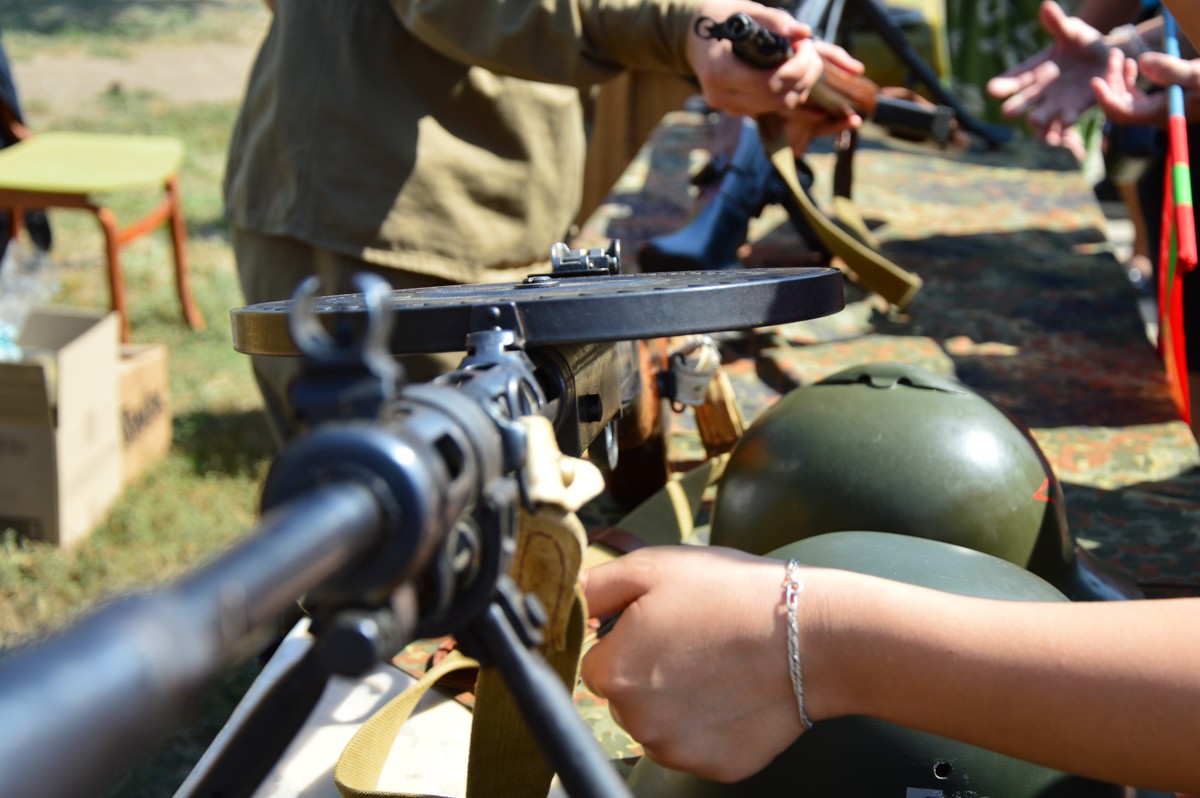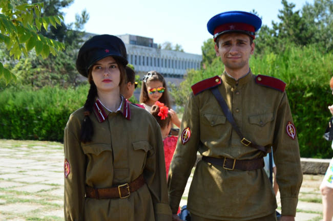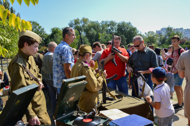 Неподалеку военно-патриотический клуб «Наследники победы» организовал выставку оружия и униформы времен Великой Отечественной войны. На "машине времени" гости и жители столицы смогли отравиться в далекие 1940-е годы, послушать, как звучит грамофон, и выпить чая из самовара на шишках.