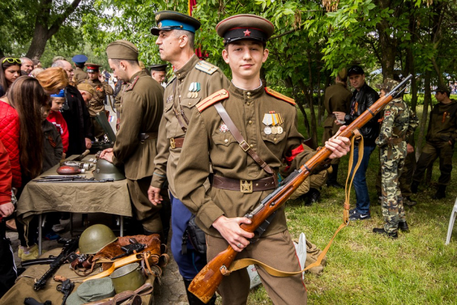 На столичной набережной Днестра патриотическое объединение «Наследники Победы» провело презентацию оружия, униформы и фронтовых предметов эпохи Великой Отечественной войны