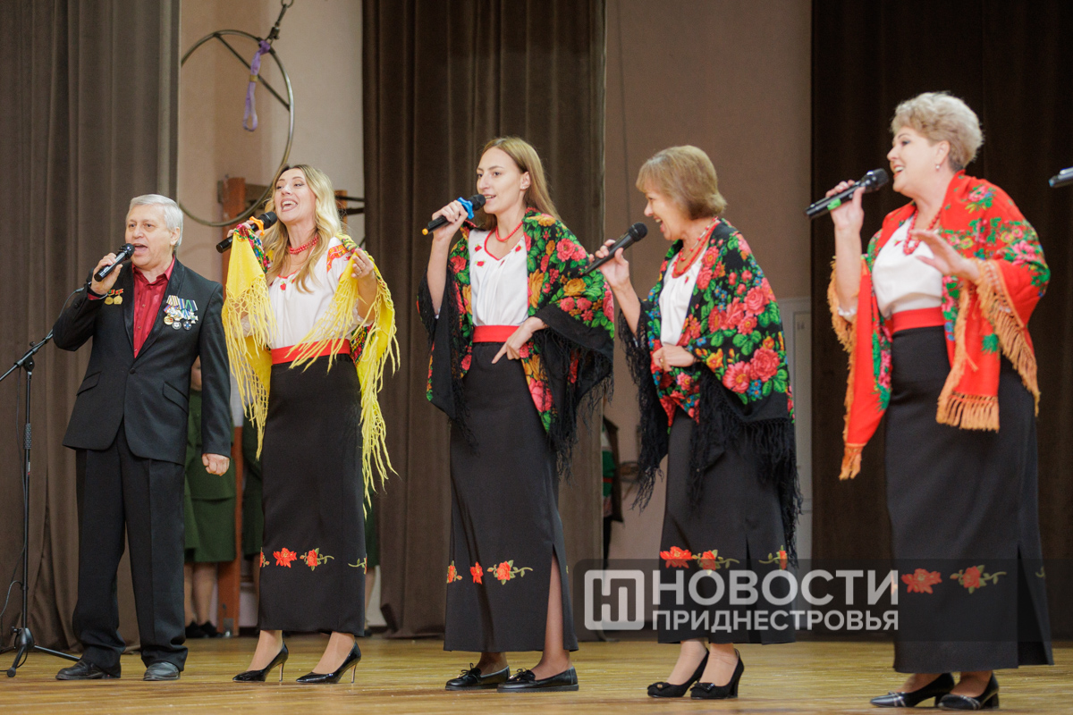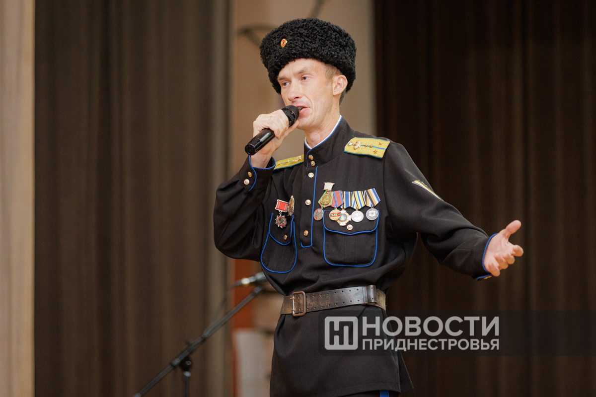 Звучала композиция о победной весне 1945 года – «На безымянной высоте». Её исполнил представитель бендерского округа ЧКВ Мадиан Мунтяну. В знак уважения к советским защитникам весь зал слушал песню стоя.