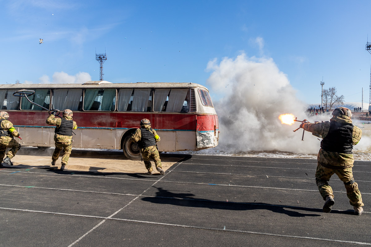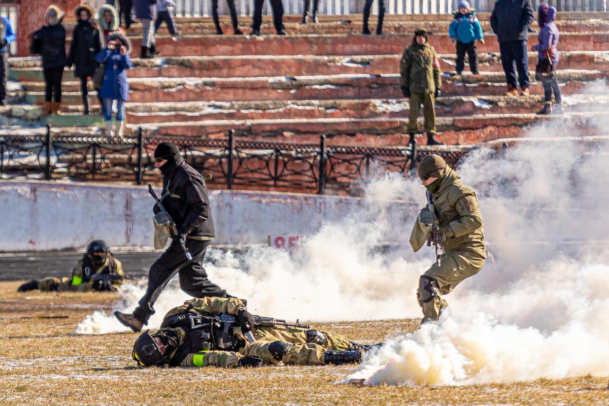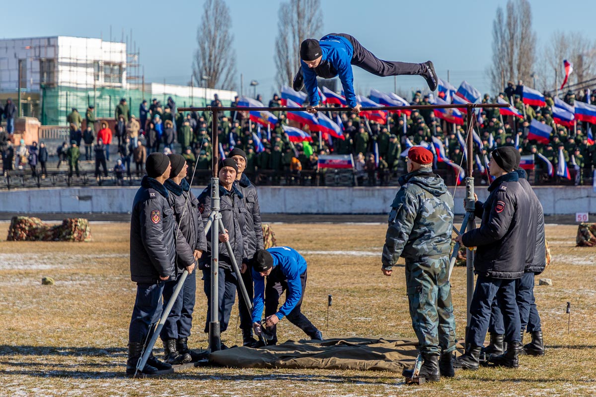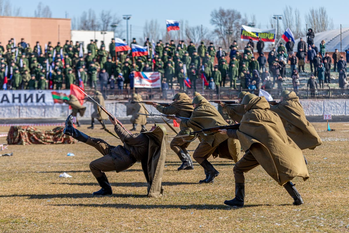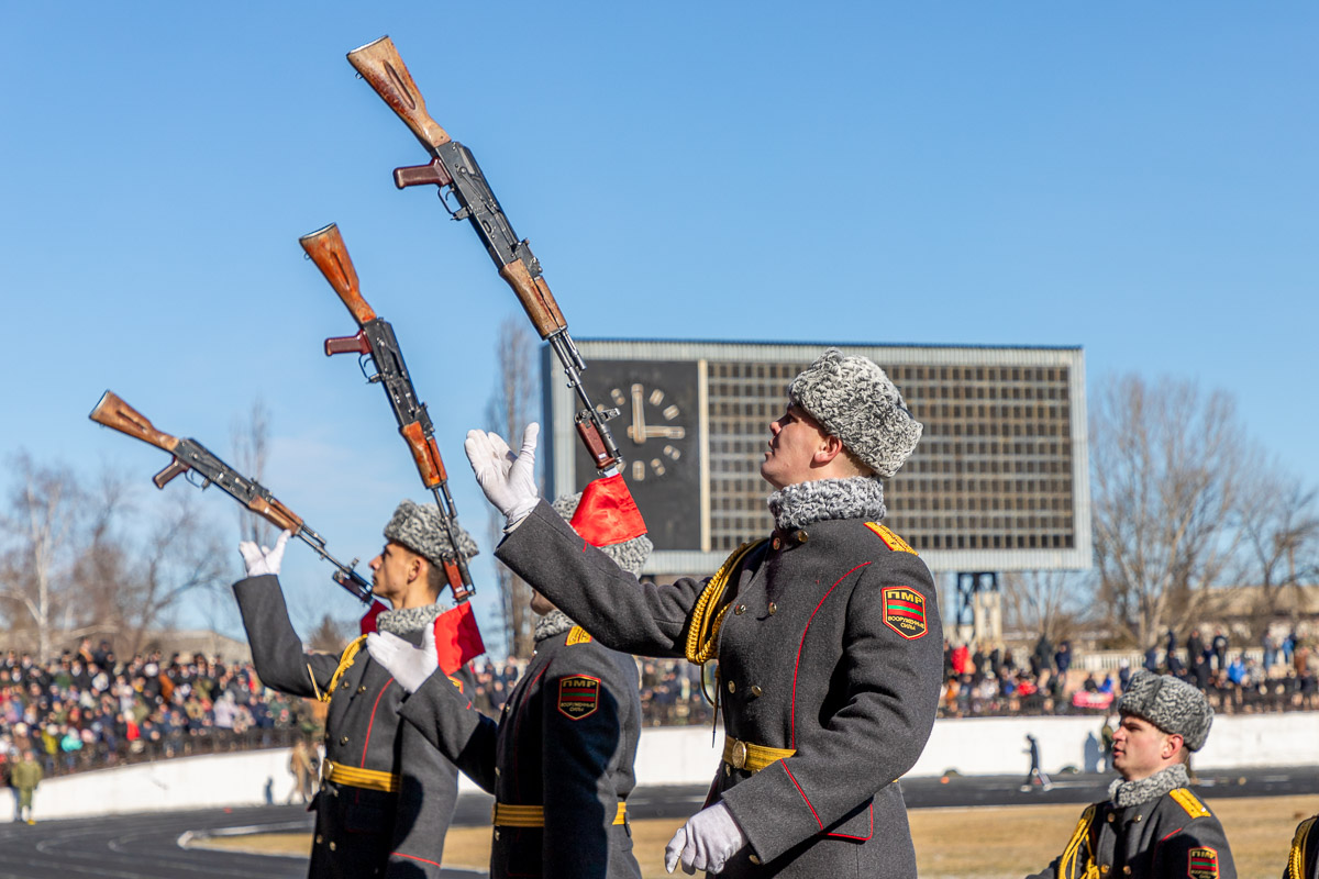В Тирасполе прошёл военно-спортивный праздник ко Дню защитника Отечества. На республиканском стадионе встретились все силовые ведомства ПМР, Оперативная группа российских войск, суворовцы и кадеты. Получилось настоящее шоу: показательные выступления, контртеррористическая операция, военизированная эстафета и многое другое. Самые интересные кадры праздника мужской силы в нашем фотоотчёте.