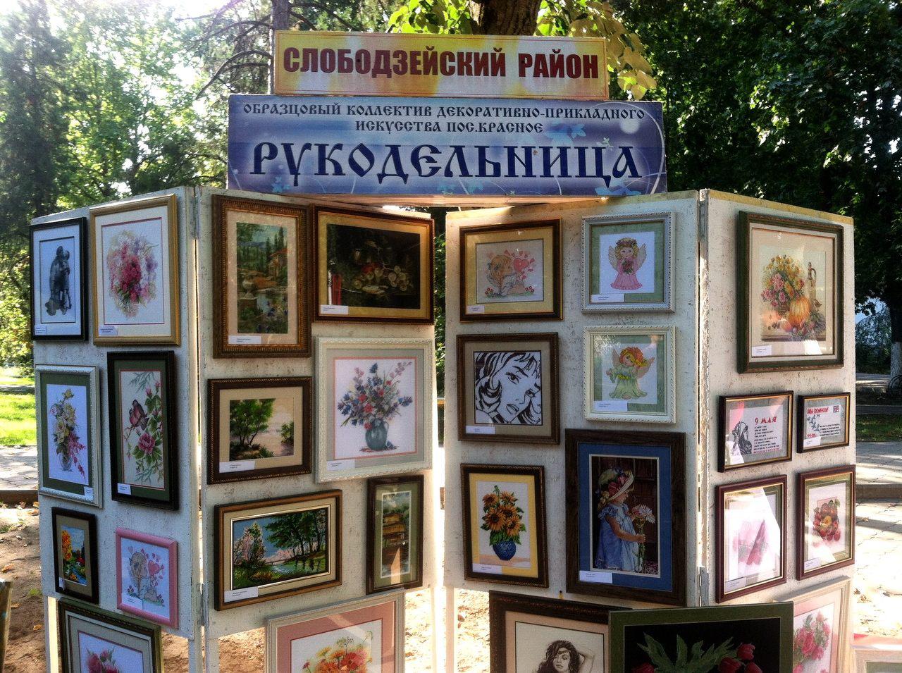 Далее Василий Тищенко направился к прилавкам предприятий легкой промышленности и животноводческой продукции. Глава города также осмотрел работы, представленные на выставке декоративно-прикладного искусства. Женщины из посёлка Красное привезли картины, вышитые крестиком. В местном Доме культуры у них есть свой кружок, где они обучают детей этому древнему мастерству.