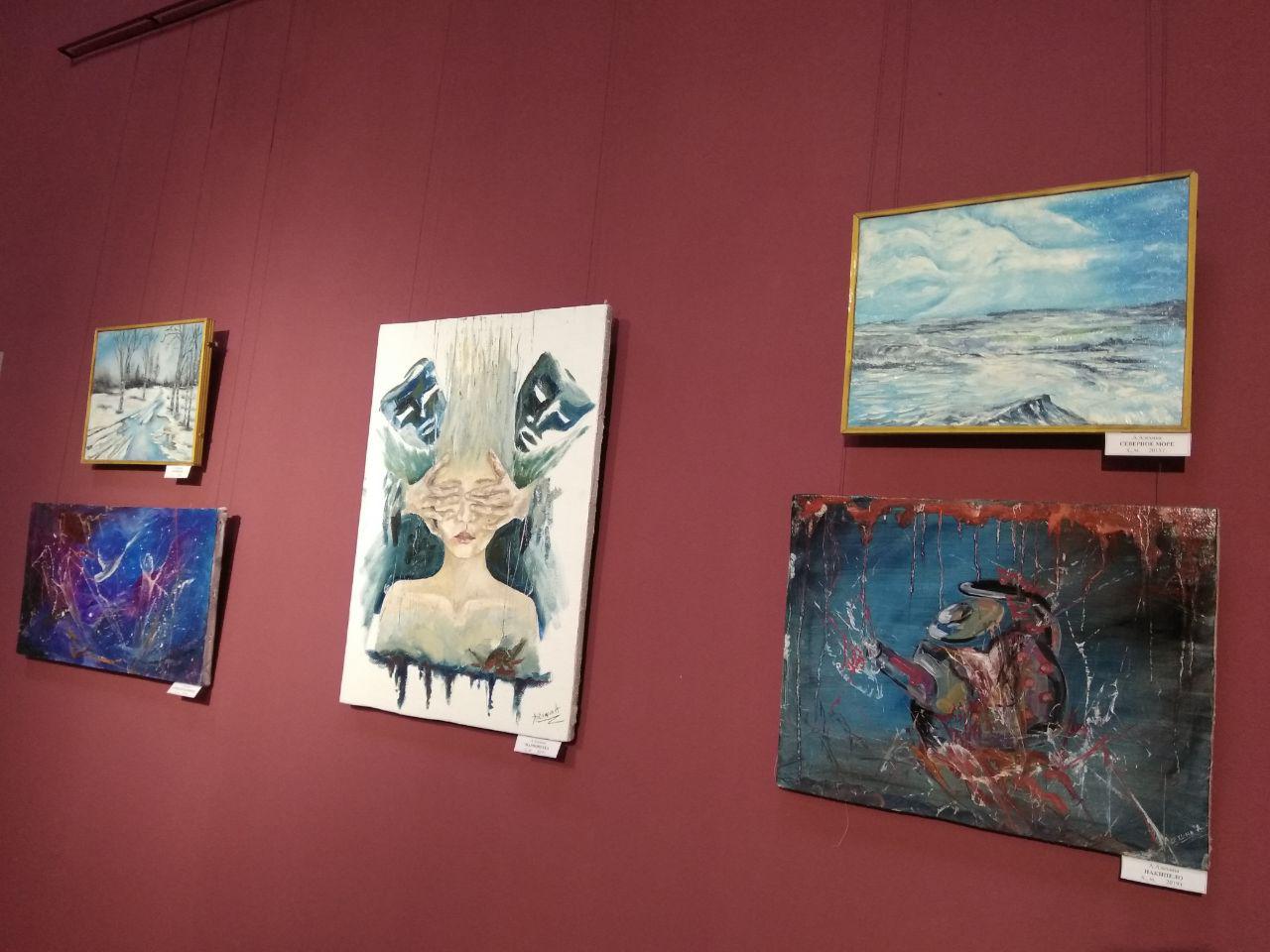 На выставке друг с другом достаточно гармонично соседствуют пейзажи и портреты, фантастические элементы и религиозные мотивы, работы различного уровня сложности.