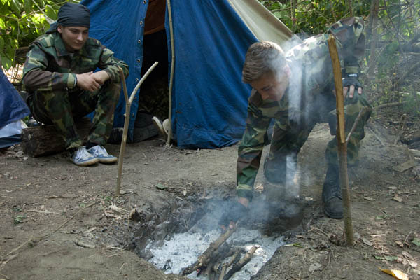 Программа полевого выхода была насыщена соревнованиями, которые проводились в виде военизированной игры. Вначале ребята разделились на команды, после чего разбили и оборудовали полевой лагерь.