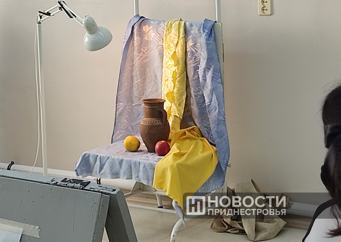 Выпускные классы принимали участие в номинации «Живопись». Она подразумевала работу с натуры с использованием акварели – изображали кувшин, яблоко и драпировку. Оценивались передача объёма, формы и цвета.