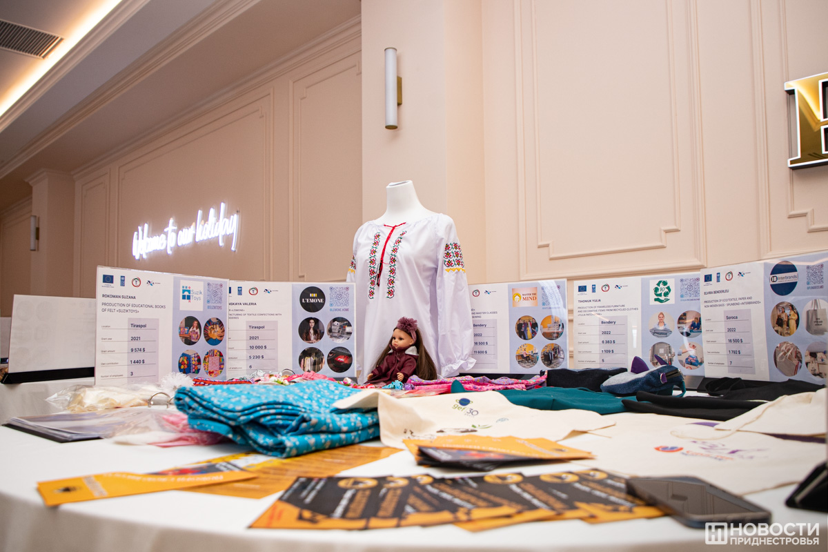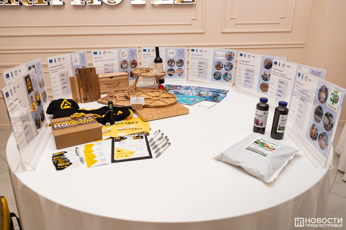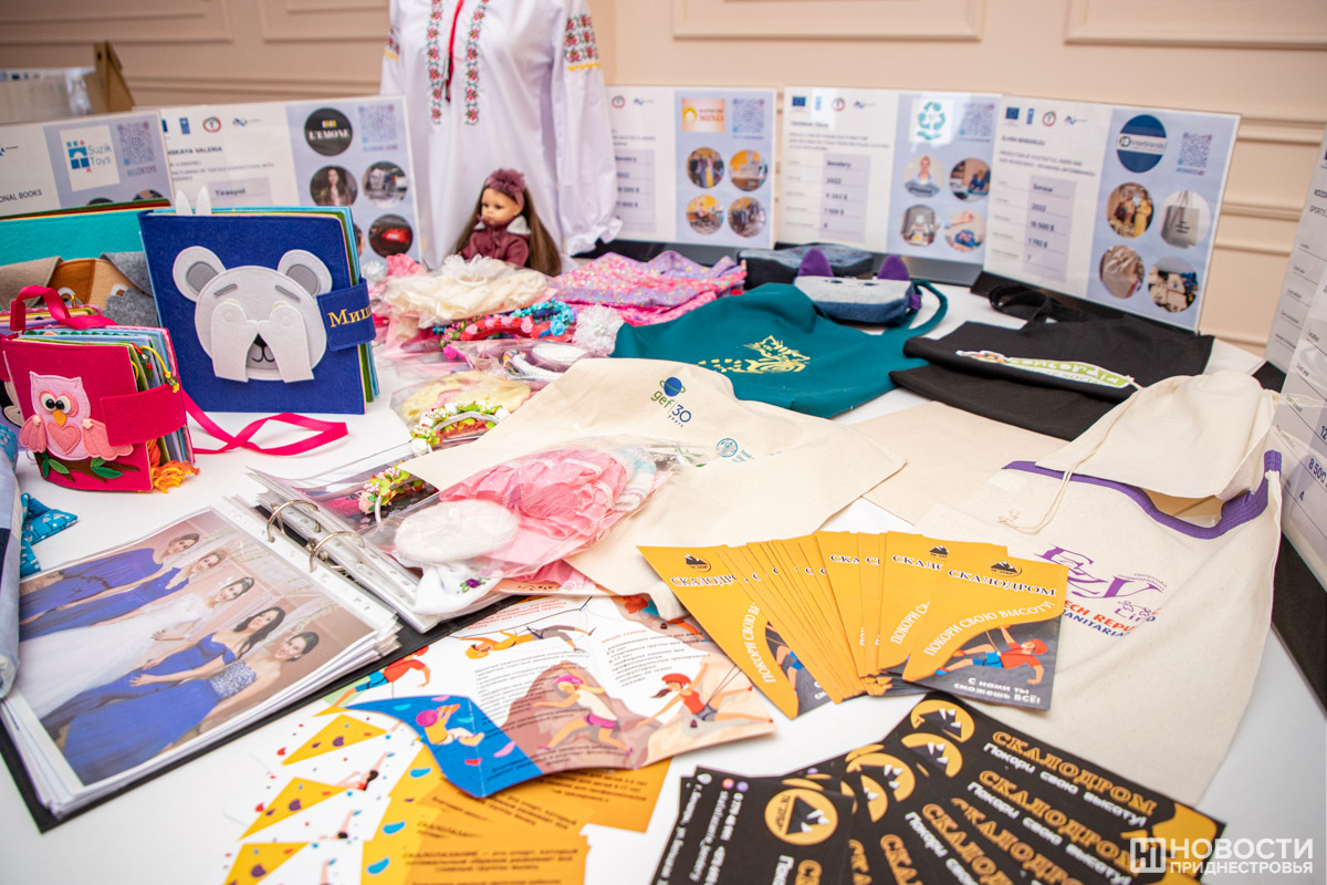 В ходе конференции была организована мини-выставка продукции предпринимателей, получивших гранты и создавших или развивших собственное дело. О своих историях успеха рассказали, в частности, Наталья Констандаки, открывшая в Бендерах Центр спортивного скалолазания «Покори свою высоту», Александра Калашник из села Гиска, представляющая семейную винодельню «КисловЪ», и руководитель Центра инновационного развития и технологий «Цифра» из Рыбницы Ирина Терлюга.