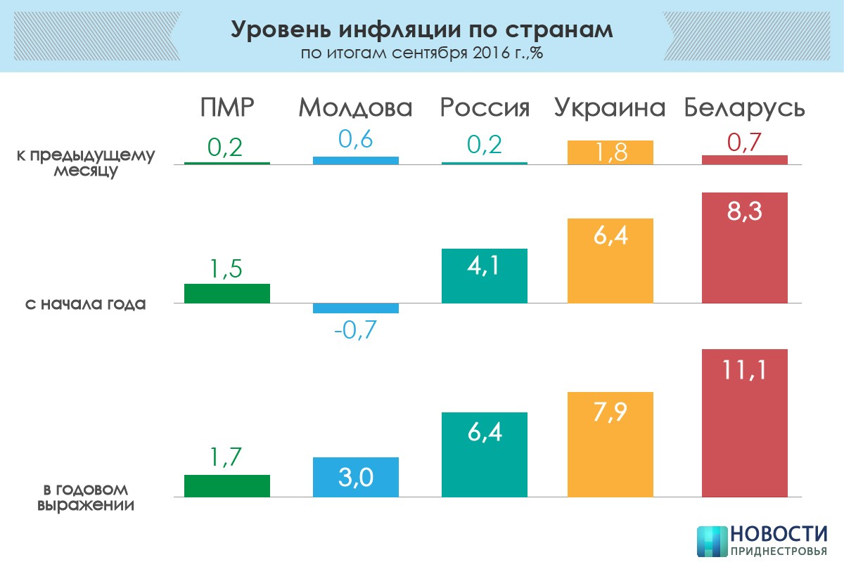 За 9 месяцев текущего года инфляция в Приднестровье составила 1,5%, а в годовом выражении – 1,7%.