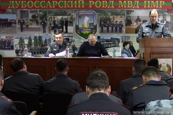 13 Окт., 2016, 15:57Дубоссары, 13 октября. /ИА «Новости Приднестровья"/. В Дубоссарском отделе внутренних дел подвели итоги работы за 9 месяцев 2016 года. В работе совещания принял участие заместитель начальника ГОИУ МВД ПМР подполковник милиции Сергей Томилин, сообщает пресс-служба ведомства. В своем докладе исполняющий обязанности начальника Дубоссарского РОВД подполковник Владимир Билоткач изложил информацию о состоянии криминогенной обстановки и о мерах, принятых для ее стабилизации.