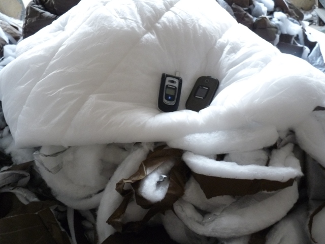 При досмотре въезжающего автомобиля в мешках с синтепоном сотрудники УИН-3 обнаружили два мобильных терминала марки «Samsung».