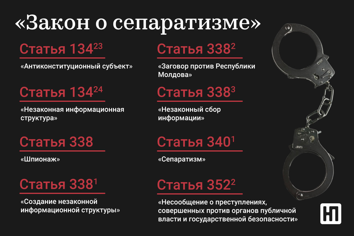 При этом в нынешних условиях, когда власти Молдовы постоянно заявляют о подготовке некоего «государственного переворота» и укрепляют систему спецслужб и политического сыска, опасность нового закона даже для простого жителя ПМР может в какой-то момент заметно вырасти. Наибольшую угрозу здесь представляют статьи о «заговоре против Молдовы», о «подстрекательстве к сепаратизму» и о «незаконном сборе информации».
