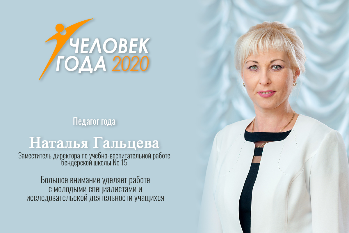 Тирасполь, 28 февраля. /Новости Приднестровья/. Лучшим педагогом года признана заместитель директора по учебно-воспитательной работе МОУ «Бендерская средняя общеобразовательная школа № 15» Наталья Гальцева. Ей вручили статуэтку победителя, медаль и диплом лауреата конкурса «Человек года – 2020».