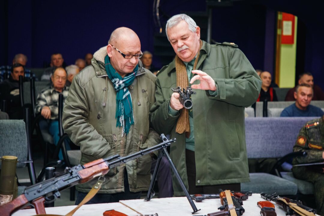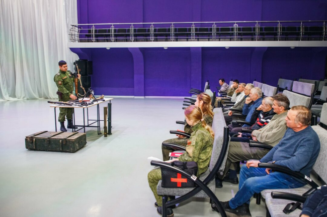Ополченцам показали несколько видеороликов об особенностях современной тактики ведения боевых действий, о характеристиках современного стрелкового оружия. Участники сбора практиковались в неполной разборке и сборке автомата Калашникова, смогли «примериться» к гранатомёту и поупражнялись в прицеливании.