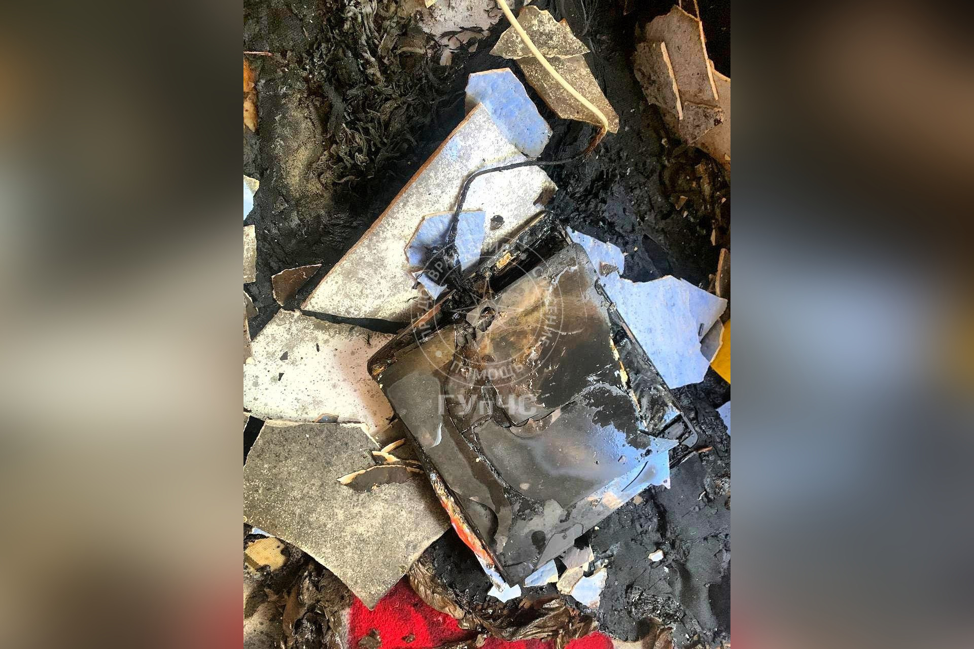 Дедушка отвёл внуков в детсад и ушёл по делам, оставив гаджет заряжаться. В какой-то момент устройство закоротило – пошли искры, загорелся диван, затем тумбочка и входная дверь. От температуры натяжной потолок вздулся и упал.