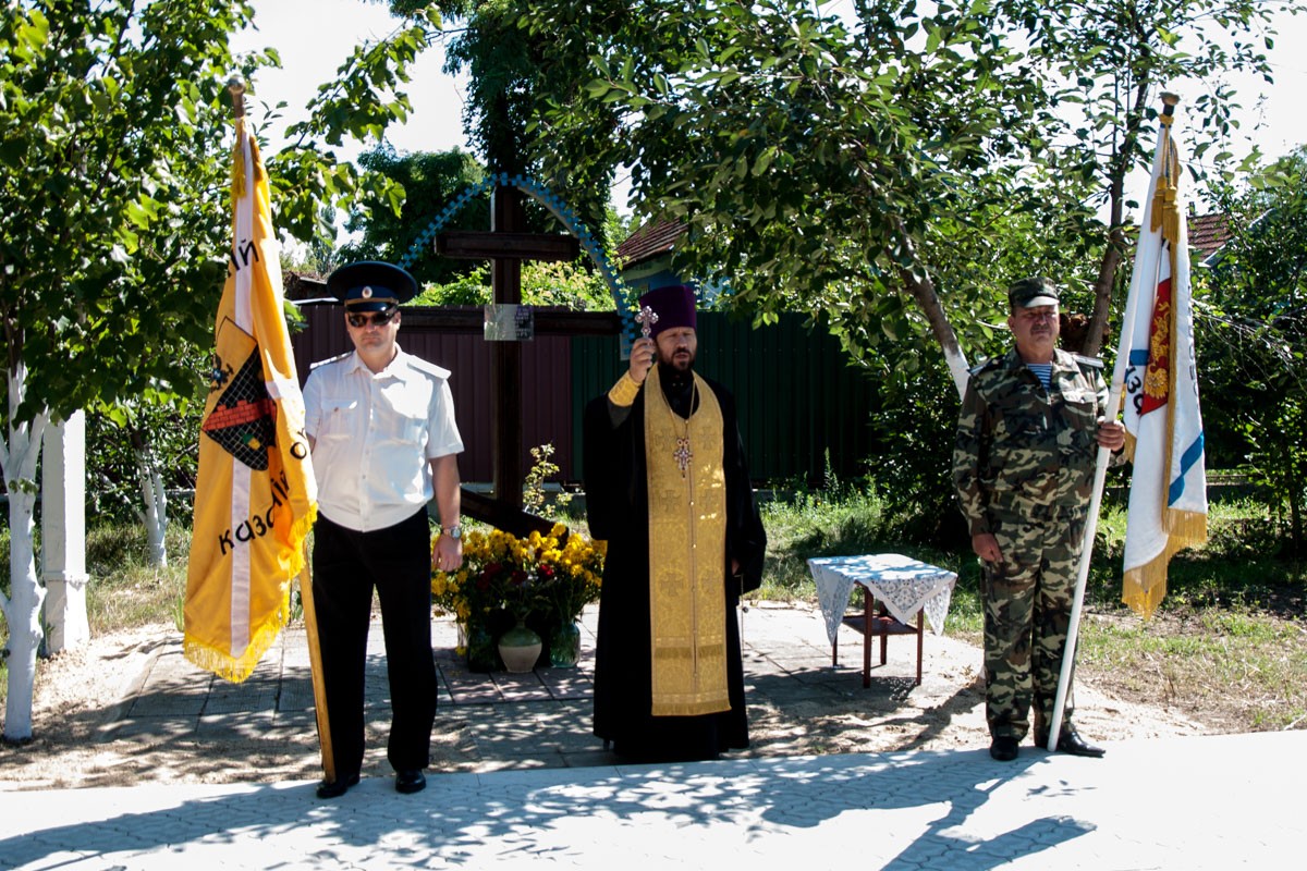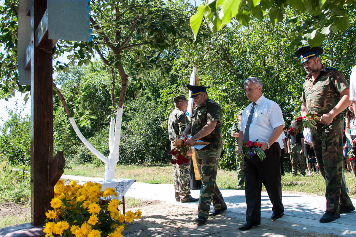 Цветы к Поклонному кресту возложили глава местной госадминистрации Василий Тищенко, атаман Черноморского казачьего войска Приднестровья, полковник Игорь Небейголова, а также представители казачества района.